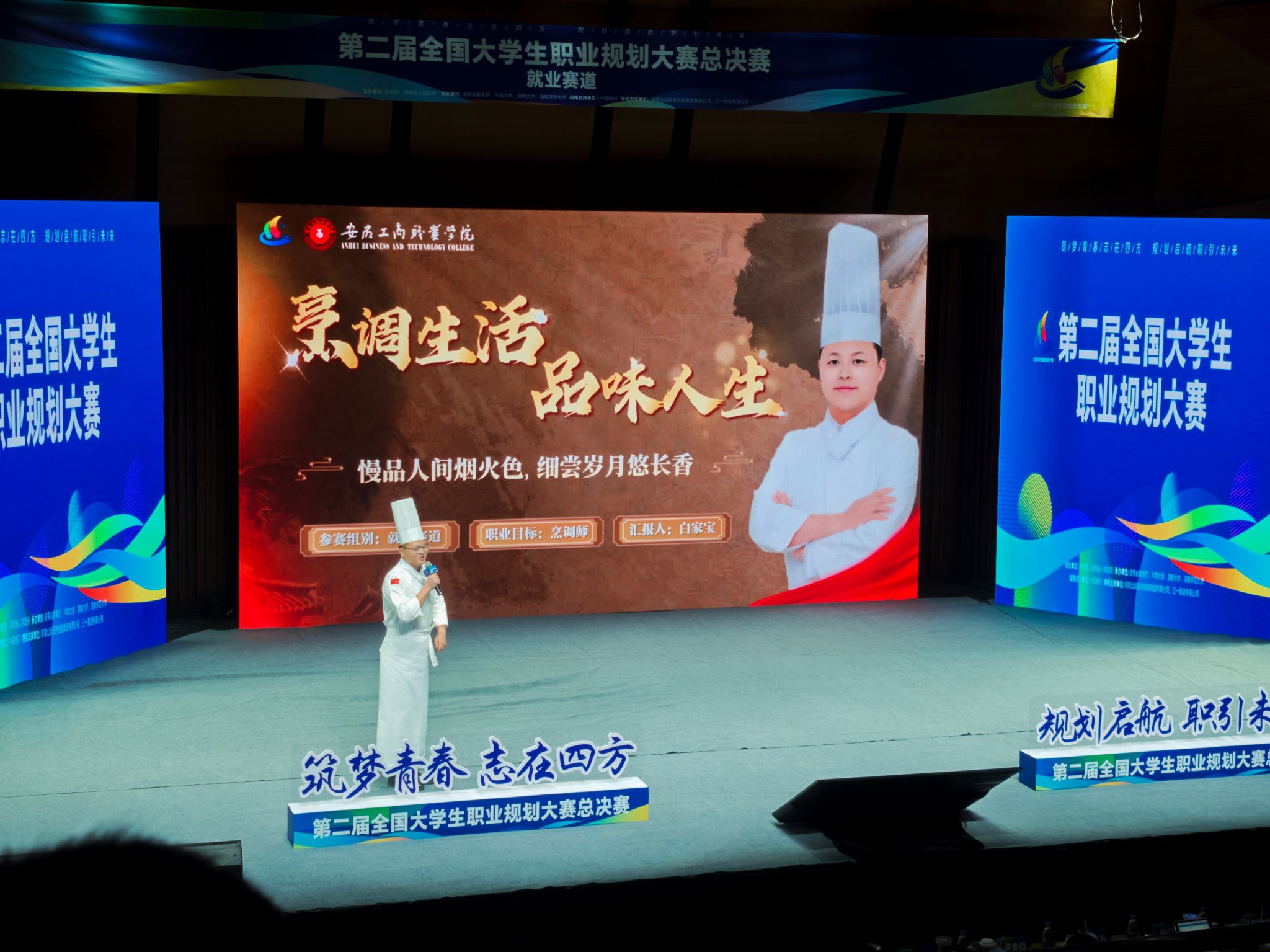 白家宝同学在比赛中以真挚的发言和深厚的专业功底打动评委,他从儿时在炉火旁学做蛋炒饭的记忆出发,结合旅游健康学院烹饪工艺与营养专业优势,阐释了“健康与美味并重”的职业理想。他通过清晰的时间节点、可量化的技能目标和紧密结合市场需求的实践路径,充分体现了他“烹调生活,品味人生”的职业宣言与就业育人的实战成果。