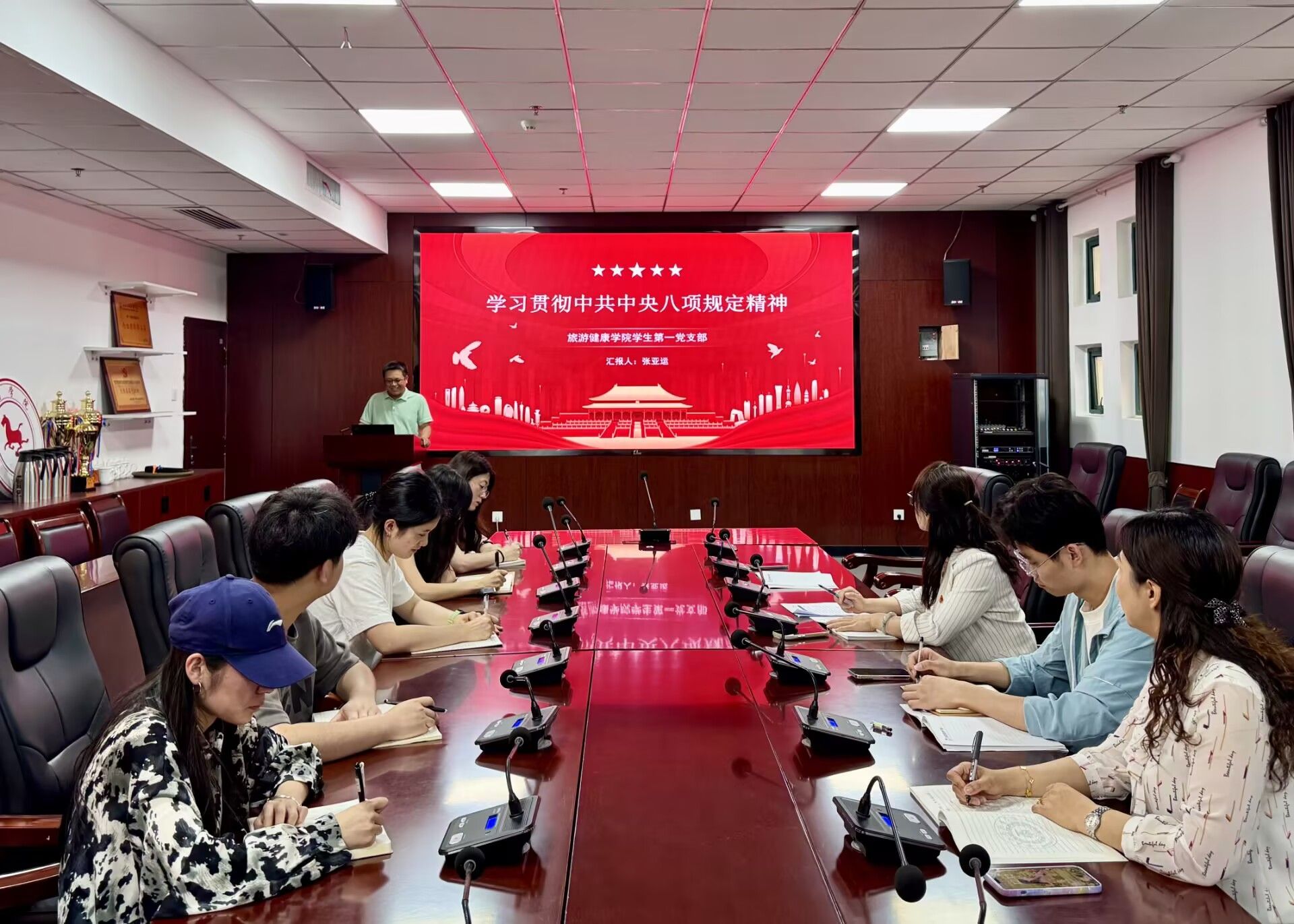为加强党支部的组织建设和作风建设,旅游健康学院学生第一党支部于 5月14日在学院会议室开展了主题党日活动。支部全体师生党员参会,会议由支部书记张亚运主持。