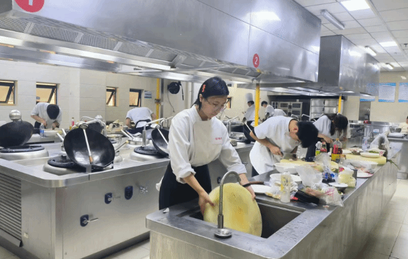 本次大赛聚焦中餐热菜、中式面点制作、花色冷拼三大项目,共有来自烹饪工艺与营养专业的24名同学进入决赛。决赛现场被划分为三个竞技区域,选手们以小组为单位,需在限定时间内完成规定菜肴与自选菜肴的制作,并进行紧张的现场解说答辩。赛场上,选手们化身美食艺术家,各展绝活,将烹饪技艺与创意灵感发挥得淋漓尽致。