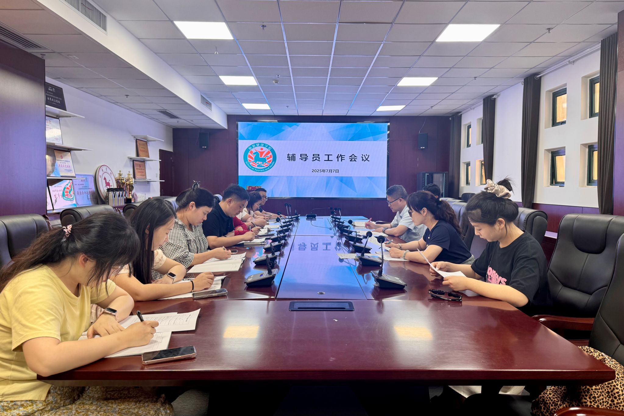 为切实推动2026届毕业生“小学期”各项工作顺利开展,7月8日中午,旅游健康学院组织召开2026届毕业班辅导员专题会议,部署“小学期”工作安排。2026届全体毕业班辅导员参加会议,会议由旅游健康学院党总支副书记刘燕主持。