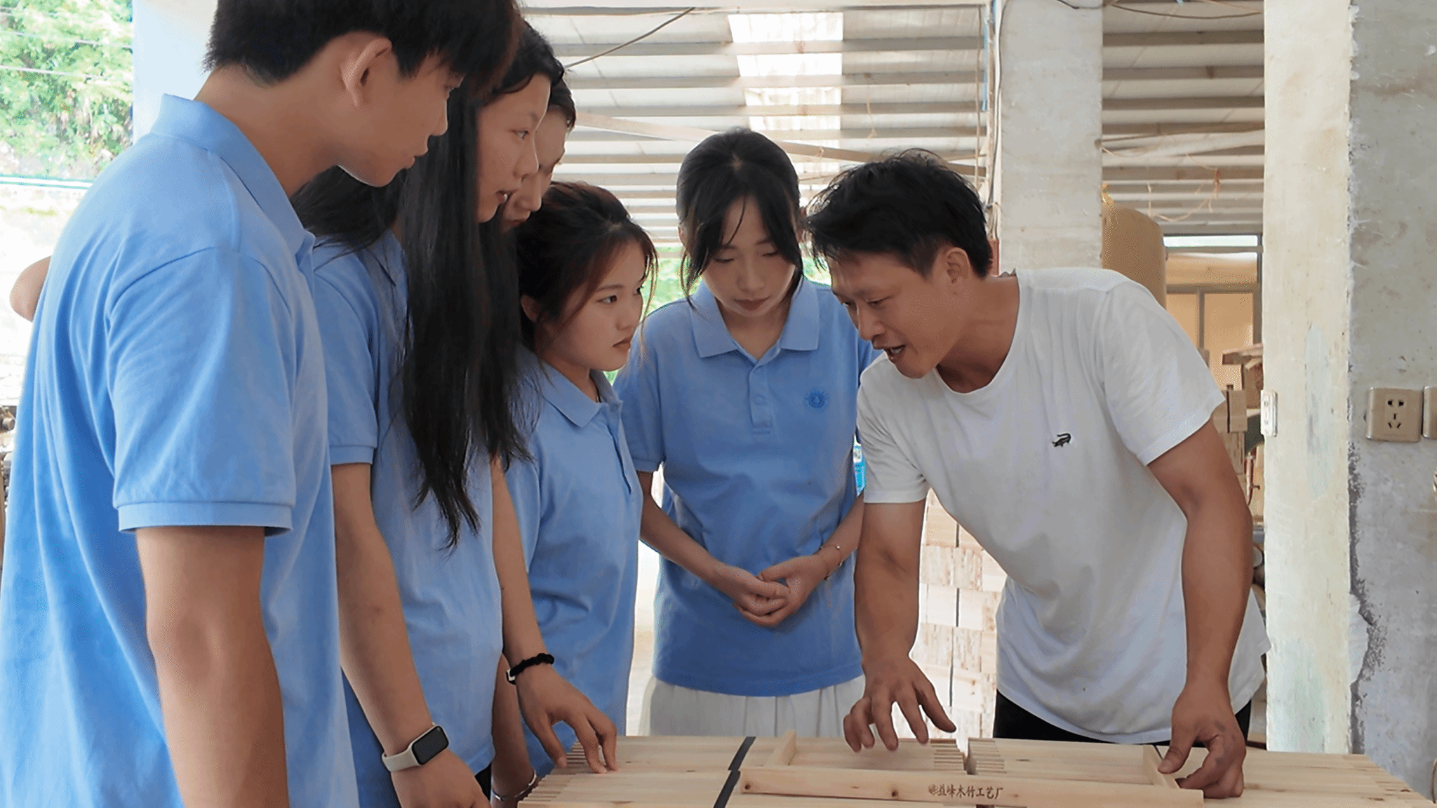 产业振兴是乡村振兴的核心,为深入剖析乡村振兴的产业支撑,实践团队系统考察了渔临村特色产业,以传统产业升级+新兴业态培育为切入点,探寻乡村振兴的实施路径。在休宁县源芳宏昌木竹制品加工厂,团队成员现场观摩竹子的加工、生产等工序,在生产车间,公司负责人向大家介绍了不同品类的竹制品的生产工艺以及加工方式、销售渠道等情况。在茶叶种植园,工作人员演示高山茶叶杀青、揉捻等技艺,团队成员亲手体验采茶、制茶流程,深刻理解一片叶子富一方百姓的产业内涵。