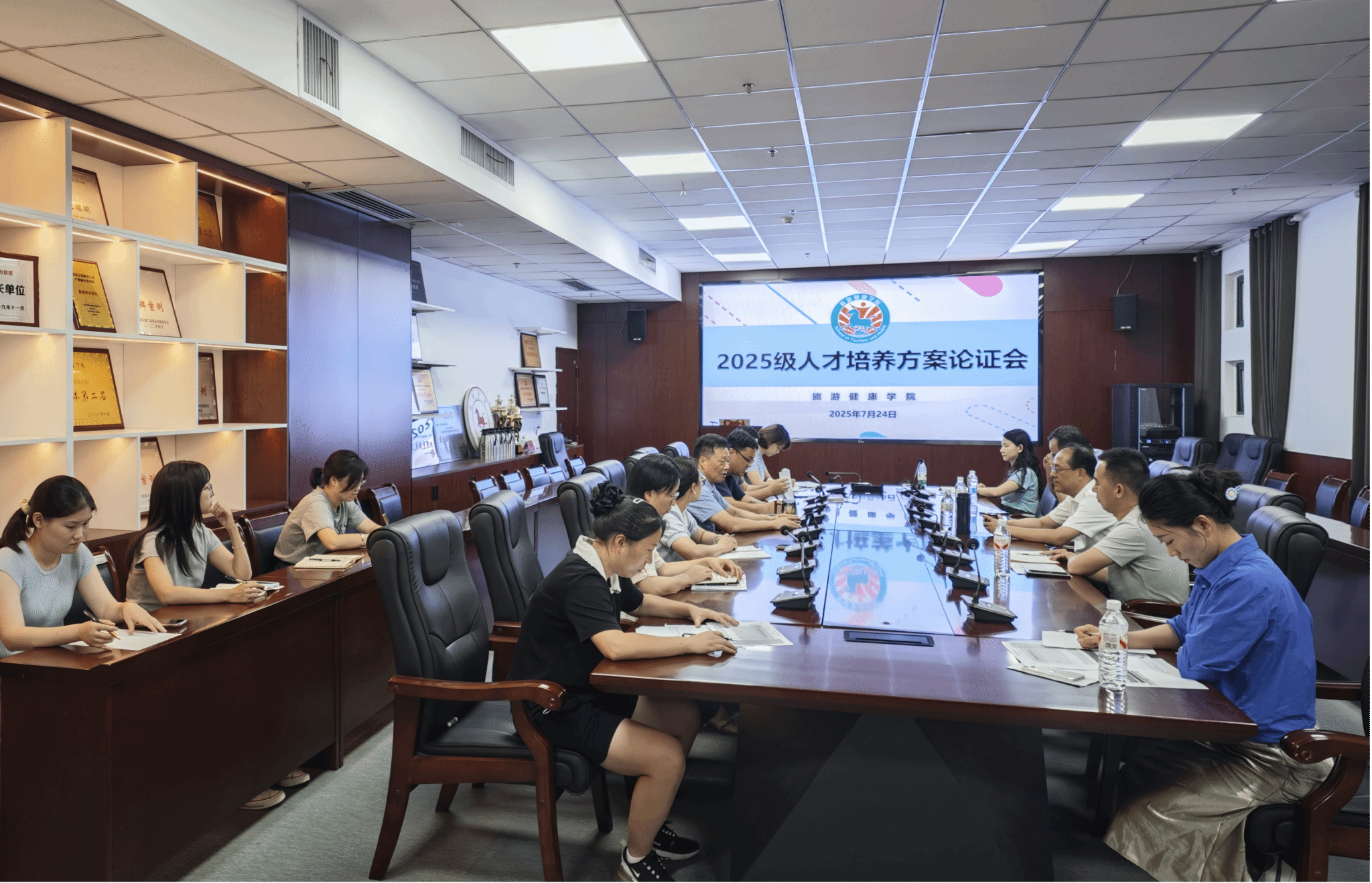 7月24日下午,旅游健康学院 2025 级人才培养方案论证会在学院会议室顺利召开。本次会议特别邀请了安徽中国青年旅行社、安徽交通控股徽风皖韵酒店管理集团、安徽饭店、V + 健身等行业专家出席,院长傅绪明、副院长王彦龙、党总支副书记刘燕、各教研室主任及教务科相关人员参加了会议,会议由王彦龙主持。