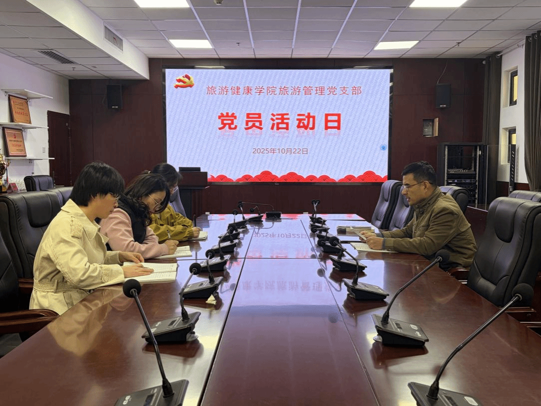 旅游健康学院旅游管理教研室党支部于2025年10月22日开展了10月份主题党日活动。活动以“理论武装强党性,光影铸魂践初心”为核心,涵盖政治理论学习与党员集体观影两大环节,全体支部党员参与。