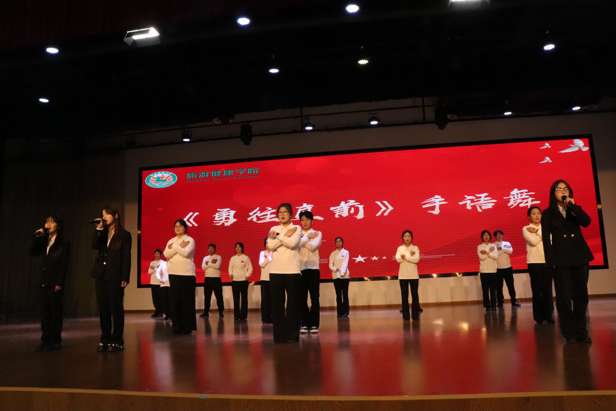 11月12日中午,旅游健康学院在大学生活动中心召开2025年度团学组织换届表彰大会,总结过去一年团学工作成果,表彰先进集体与个人,并完成新一届团学组织骨干的聘任仪式。旅游健康学院党总支书记杨锐、组织员张程程、办公室主任孙群以及团学组织指导老师和辅导员代表出席大会。