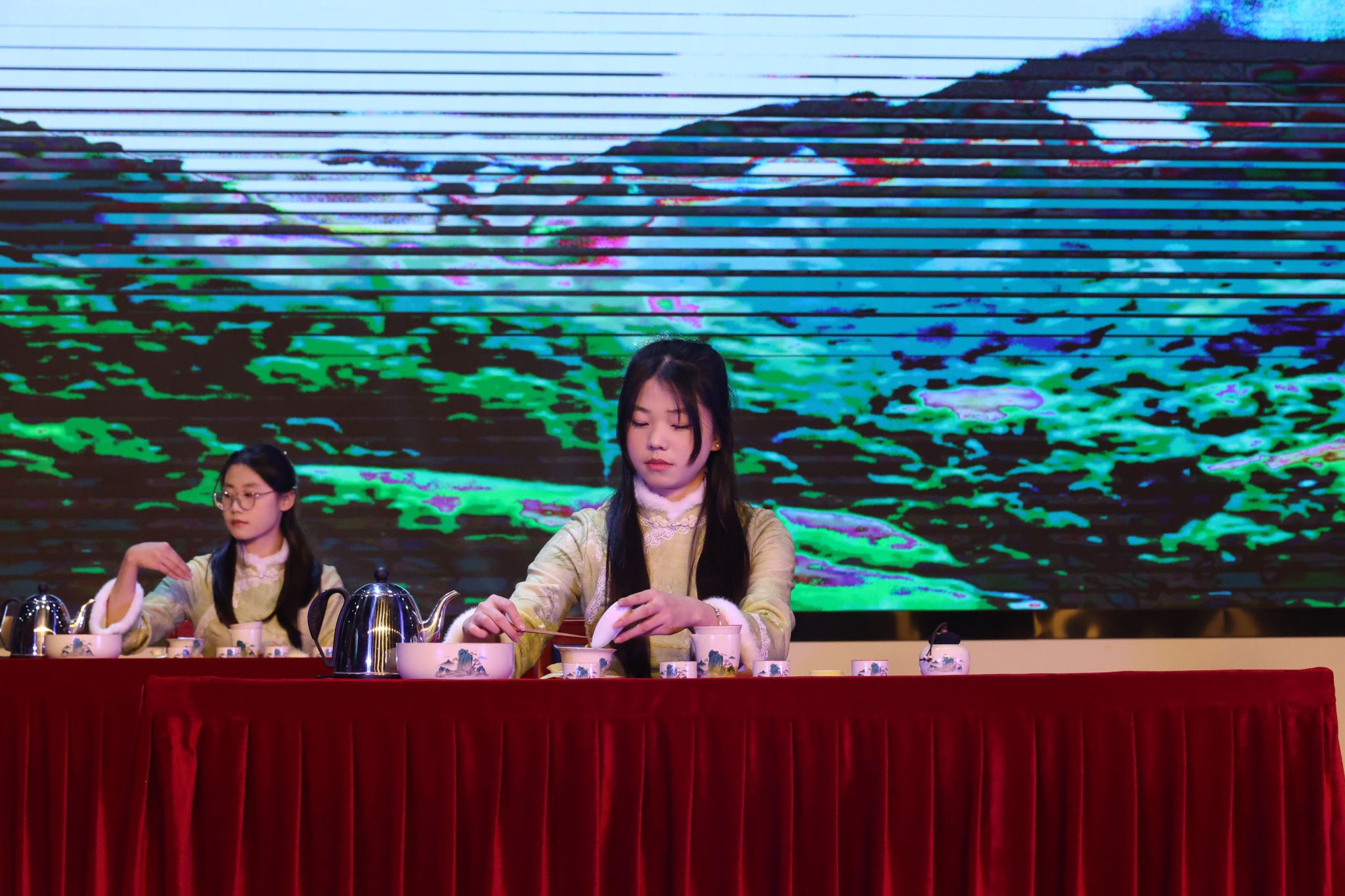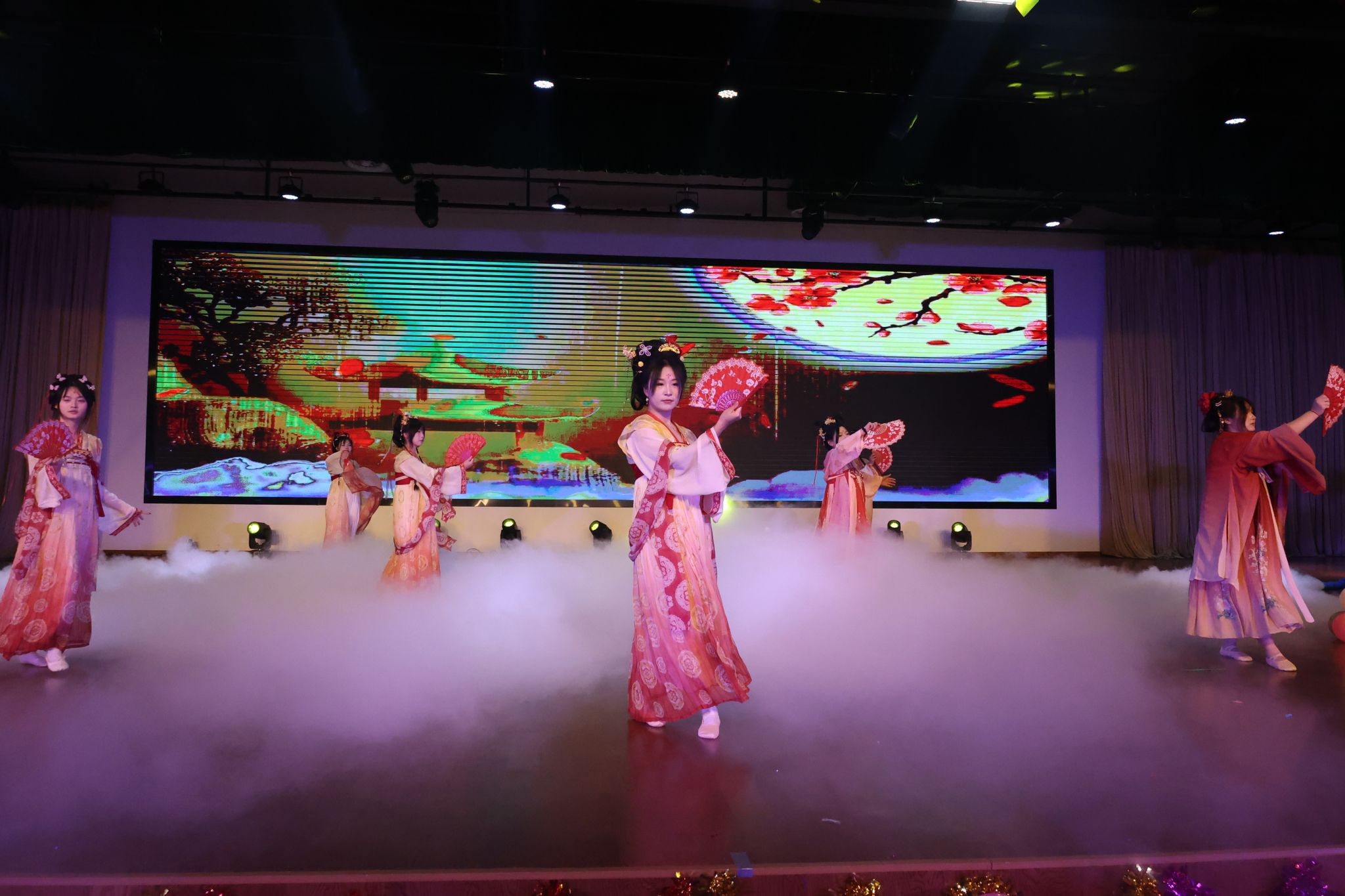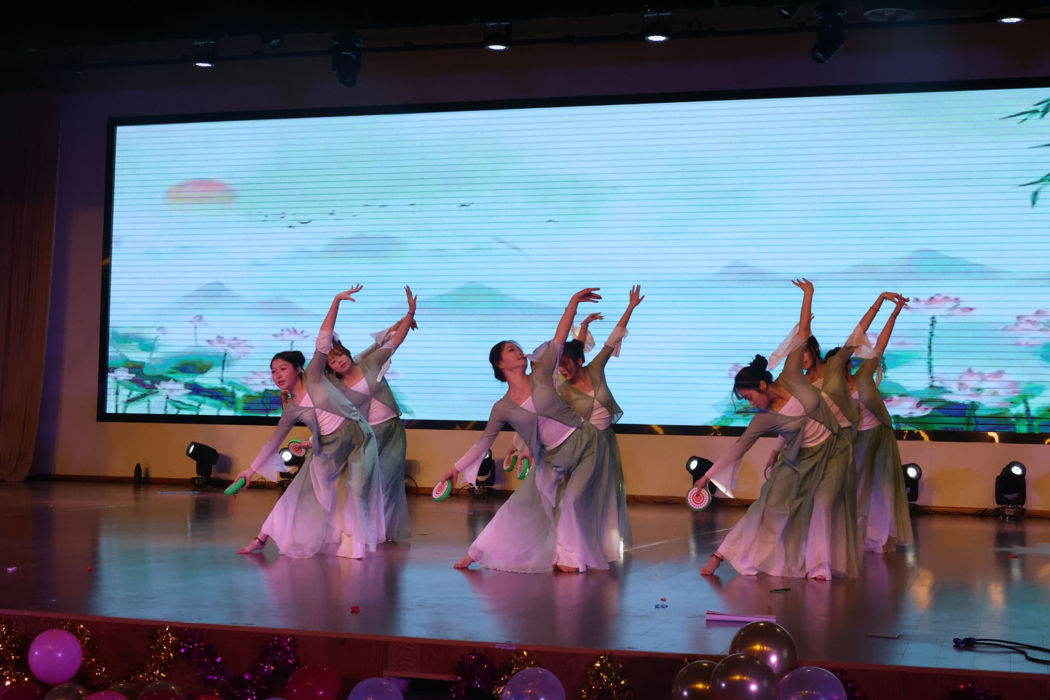 活动在喜庆欢快的歌曲《新年快乐》中拉开帷幕。同学们通过歌曲、舞蹈、小品、相声等丰富的艺术形式,展现旅游健康学院大学生朝气蓬勃的精神风貌和青春洋溢的时代风采。舞蹈《快乐再出发》青春洋溢、充满活力;传统民俗《群狮贺岁》热闹喜庆,寓意吉祥;舞蹈《莲鼓越歌行》以唐代采莲文化为背景,通过莲鼓、越歌与舞蹈,展现了一幅诗意盎然的江南采莲画卷;书法茶艺节目《墨韵茶香》将中国书法和传统茶艺相结合,带来满满的中式浪漫;小品《反诈联盟》妙趣横生、笑点频出,令人捧腹的同时,演员们用现实中的诈骗案例警示广大同学提高警惕、远离诈骗;相声《地板砖》通过诙谐幽默的表演,展示了当代大学生的校园生活;舞蹈《时尚健身操》动感十足,健康值拉满;歌曲《你在,不在》《特别的人》时而温馨浪漫,时而忧愁感伤;舞蹈《我最红》活力四射,热情洋溢。