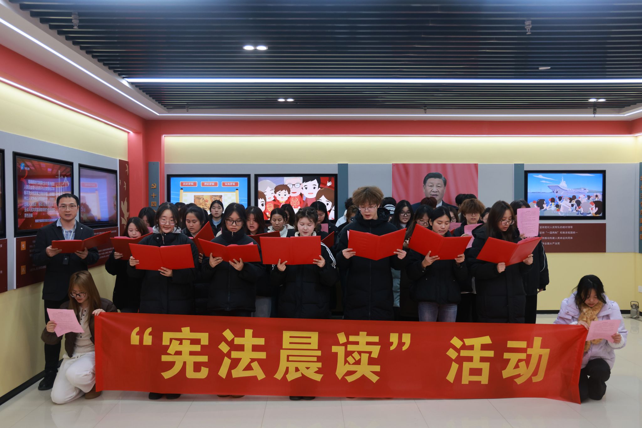 12月4日,首场活动宪法晨读活动在智慧思政实践基地隆重举行。学生在老师的组织下,整齐肃立,齐声诵读宪法条文。朗朗的诵读声在基地回响,让宪法的神圣与庄严深入人心。同学们通过这一活动,对宪法内容有了更深刻的理解与感悟,进一步明确了自身的权利与义务,为树立正确的法治观念奠定了坚实基础。
