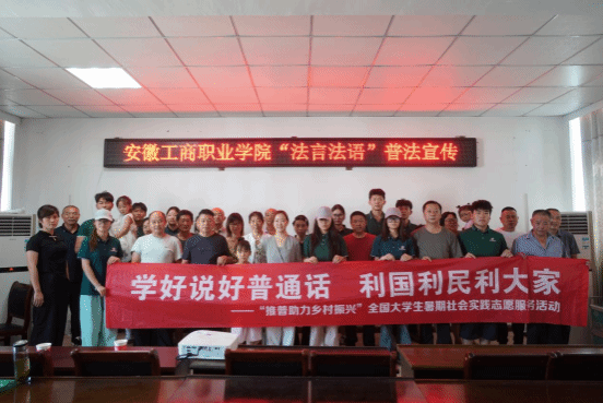 为深化新时代乡村精神文明建设,加强法治教育,把推广国家通用语言文字与推进农村移风易俗相结合,8月16日,安徽工商职业学院“普育乡风”志愿服务队在太湖县城西乡大龙村第二党支部党员活动室开展“法言法语”普法宣传活动。团队指导教师周丹萍通过典型案例解析、有奖知识问答、法律咨询互动等形式,用通俗易懂的普通话架起法治宣传的桥梁,让“普”与“法”走进村民生活。