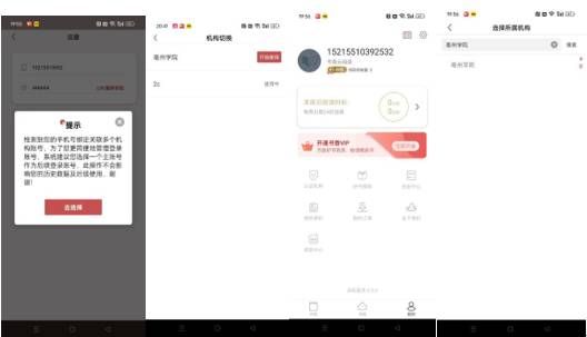4)认证一:机构IP认证----机构切换----本校名称----开始使用