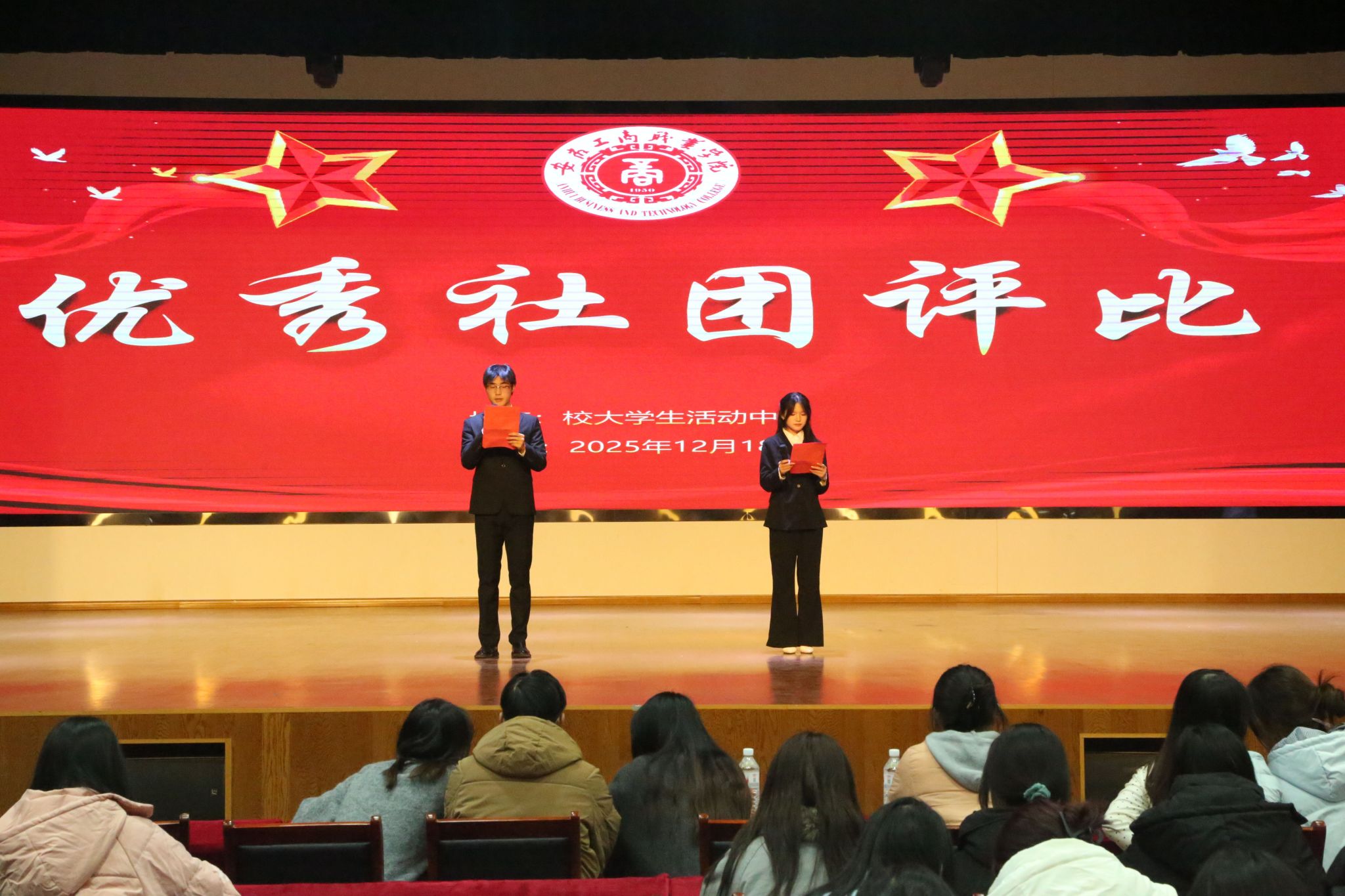 据悉,我校现有各类校级学生社团二十三个,涵盖思想引领、学术科技、文化艺术、体育健身、公益志愿等多个领域。优秀社团评比活动每学期举办一次,已成为检验社团工作成效、促进社团交流学习、推动社团整体水平提升的重要品牌活动。本次活动不仅是对过往工作的总结与表彰,更是对未来发展的动员与展望。它必将激励各学生社团再接再厉,开拓创新,为营造更加浓厚、多元、向上的校园文化氛围,助力学校人才培养和校园精神文明建设贡献更大的青春力量。(撰稿:易佳佳 一审:易佳佳 二审:刘乐 三审:童乐)