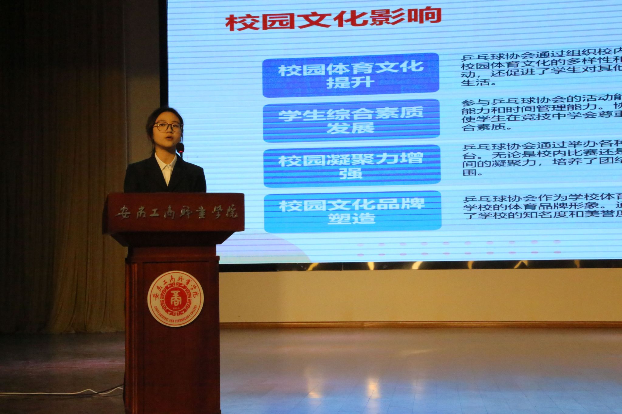 评比活动自启动以来,历经材料初审、活动考察等多个环节。展示现场,各候选社团通过精心准备的PPT、视频、现场演说等多种形式,全面汇报了一学期以来在组织建设、活动开展、学术创新、文化传承、社会服务等方面取得的突出成绩和特色亮点。从思想引领到志愿服务,从学术科创到文艺体育,丰富多彩的社团活动生动展现了我校学子昂扬向上的精神风貌和全面发展的综合素质。现场气氛热烈,掌声不断。本次评比活动秉持公平、公正、公开的原则,主要采取社团自评、互评、指导老师评分和现场评分相结合的评分规则,经过激烈角逐与公正评审,最终评选优秀社团:校辩论协会、校国旗护卫队、校沉屑书画社、校乒乓球协会、校就业创业协会、校青年马克思主义学习研究会。
