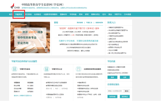 1.登陆教育部“中国高等教育学生信息网”(简称“学信网”),网址为http://www.chsi.com.cn,点击“学籍查询”模块;