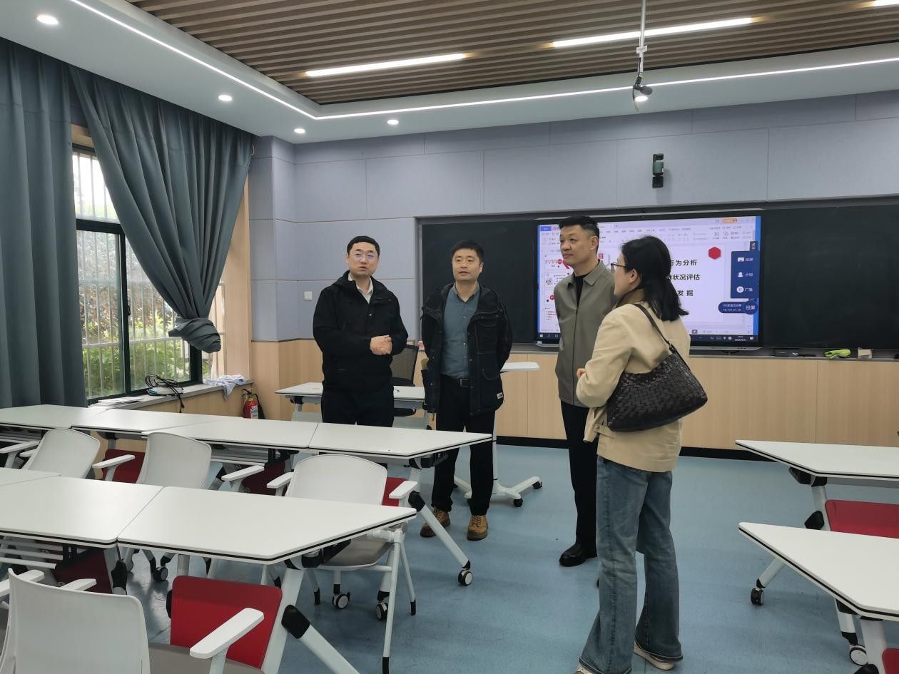 调研组实地考察了我校常态化智慧教室,重点了解了我校智慧教室在环境智能调控、设备集中管控、教学互动呈现、信息可视化发布等方面的设计理念与技术优势,对系统的稳定性、实用性与创新性给予了高度评价。