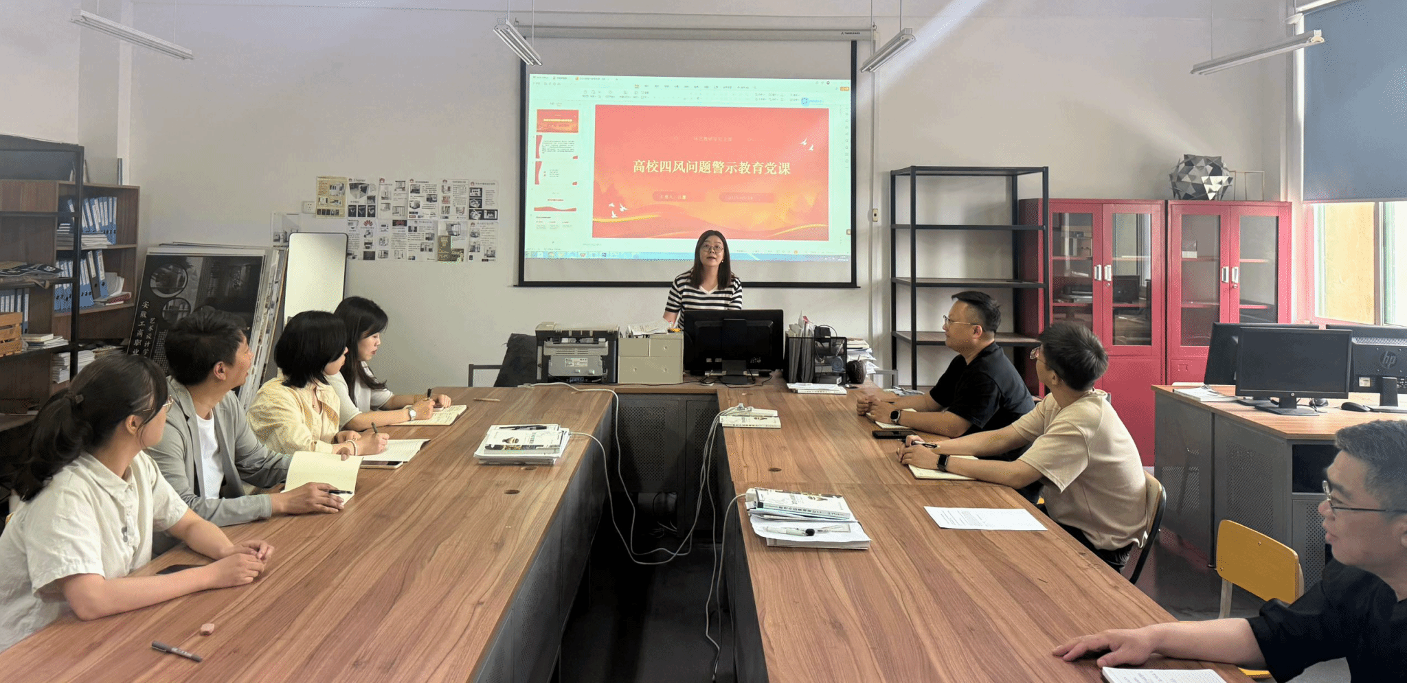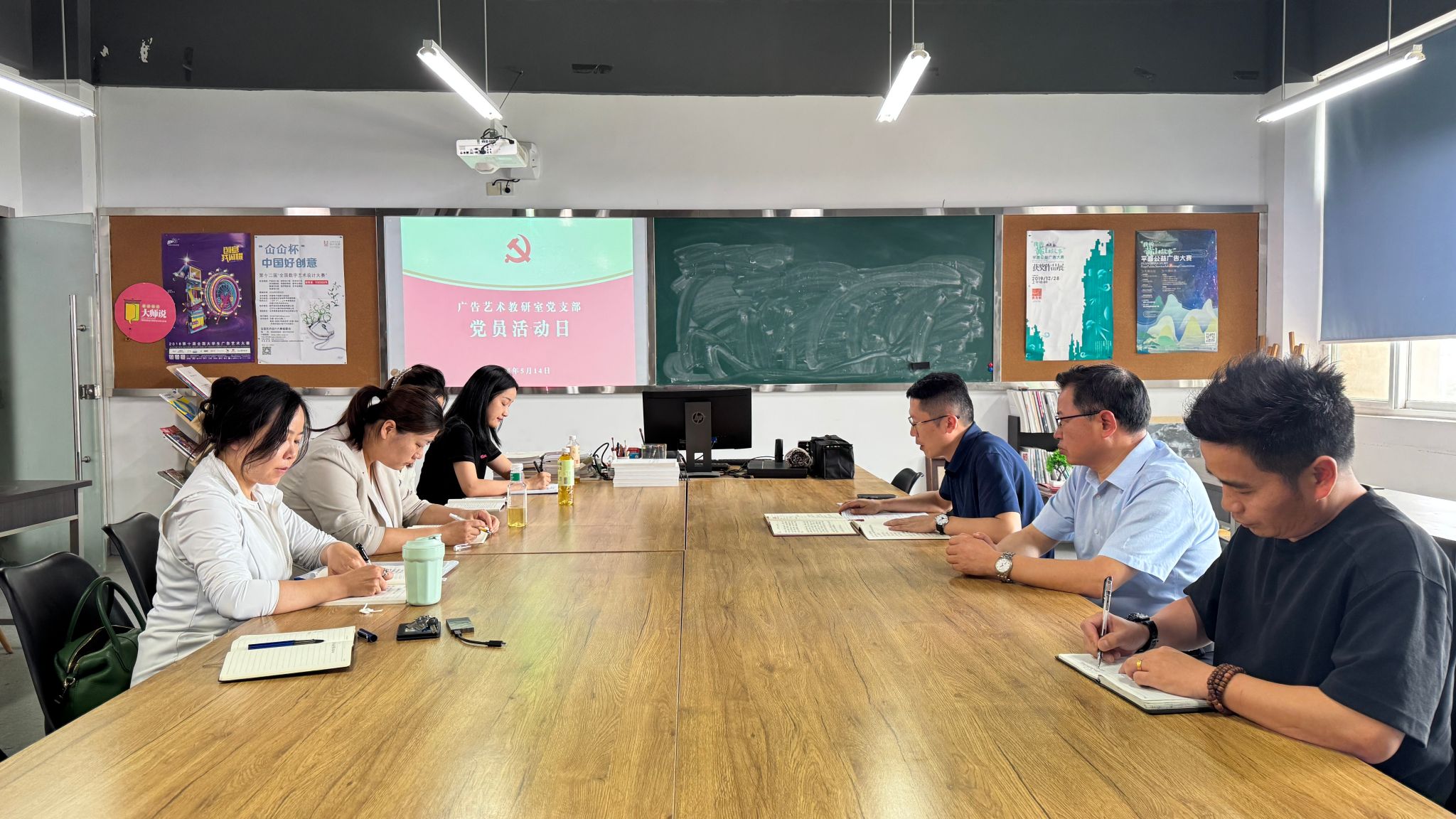 为深入贯彻中央八项规定精神学习教育,推动党支部建设,5月14日中午,艺术设计学院环境艺术教研室党支部、广告艺术教研室党支部和学生党支部在庐阳校区致知楼分别开展五月份党员活动日学习。