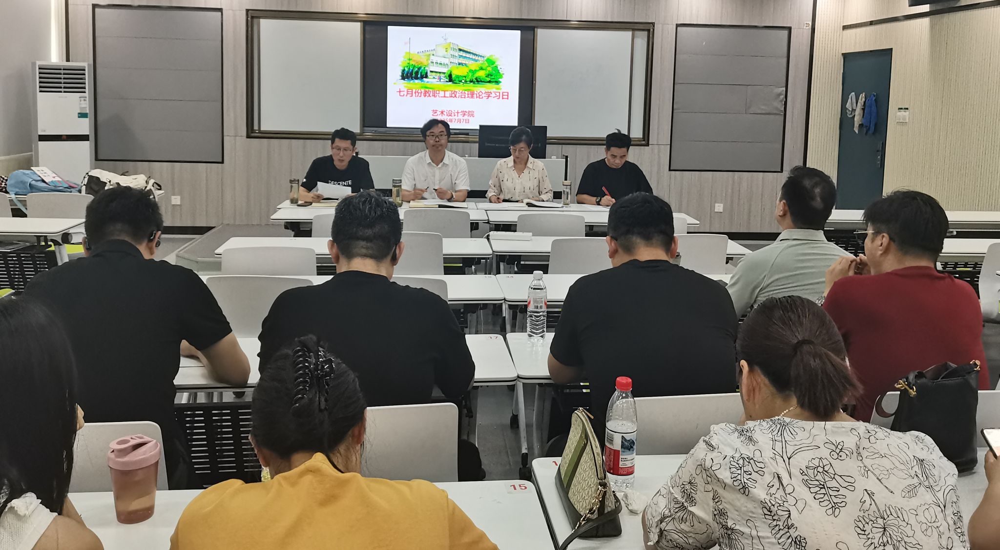 7月7日中午,艺术设计学院党总支在致知楼Z204智慧教室召开七月份教职工政治理论学习会议。校党委委员、党委宣传统战部部长、艺术设计学院党总支书记孔成,艺术设计学院党总支副书记、院长魏芬,副书记张乐,副院长邱志斌及全体教职工参加学习。
