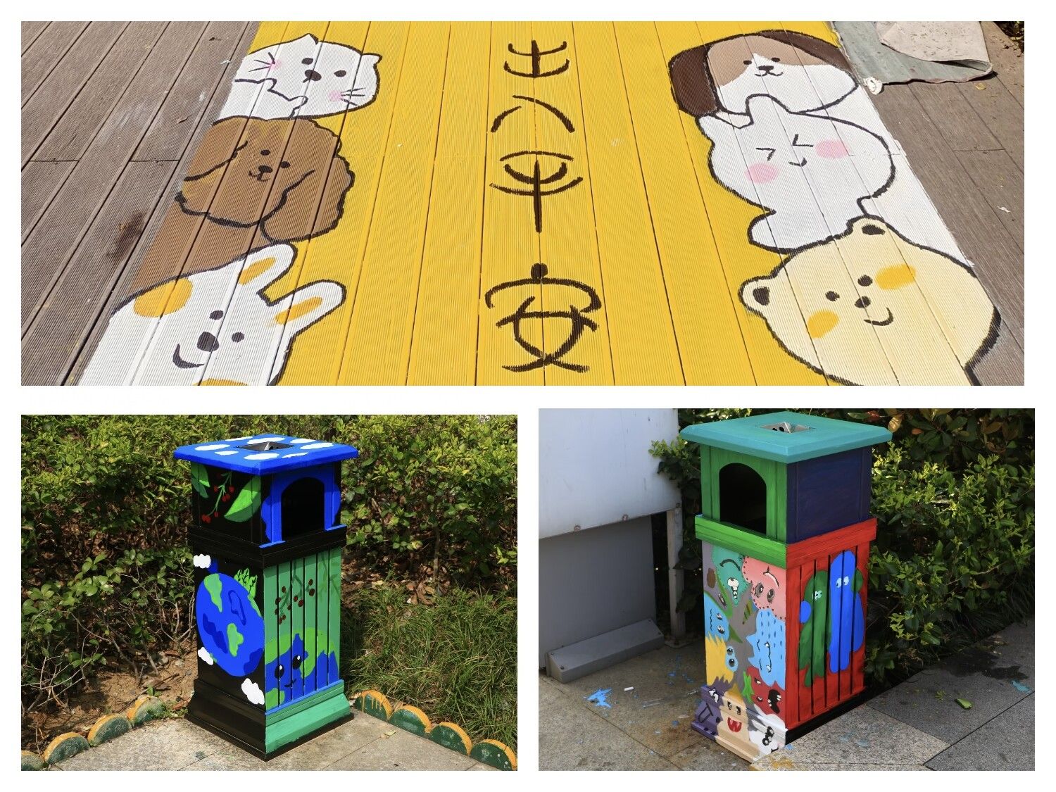 3月31日清晨,志愿者们就奔赴社区进行绘制。这次绘制的是位于小区内的萌娃停车场和附近的垃圾桶,绘画以童心、童趣为主题。每一道线条的描绘,都倾注着同学们对美好生活的热爱;每一块色彩的填涂,都流露出同学们对志愿服务的热情。经过九个小时的忙碌,同学们顺利完成了所有的绘画任务,一幅幅缤纷的图绘虽然简约,却又不失童真鲜活,使原本暗淡的地面、垃圾桶变成了社区的一道靓丽风景线,居民走过都忍不住驻足观看。