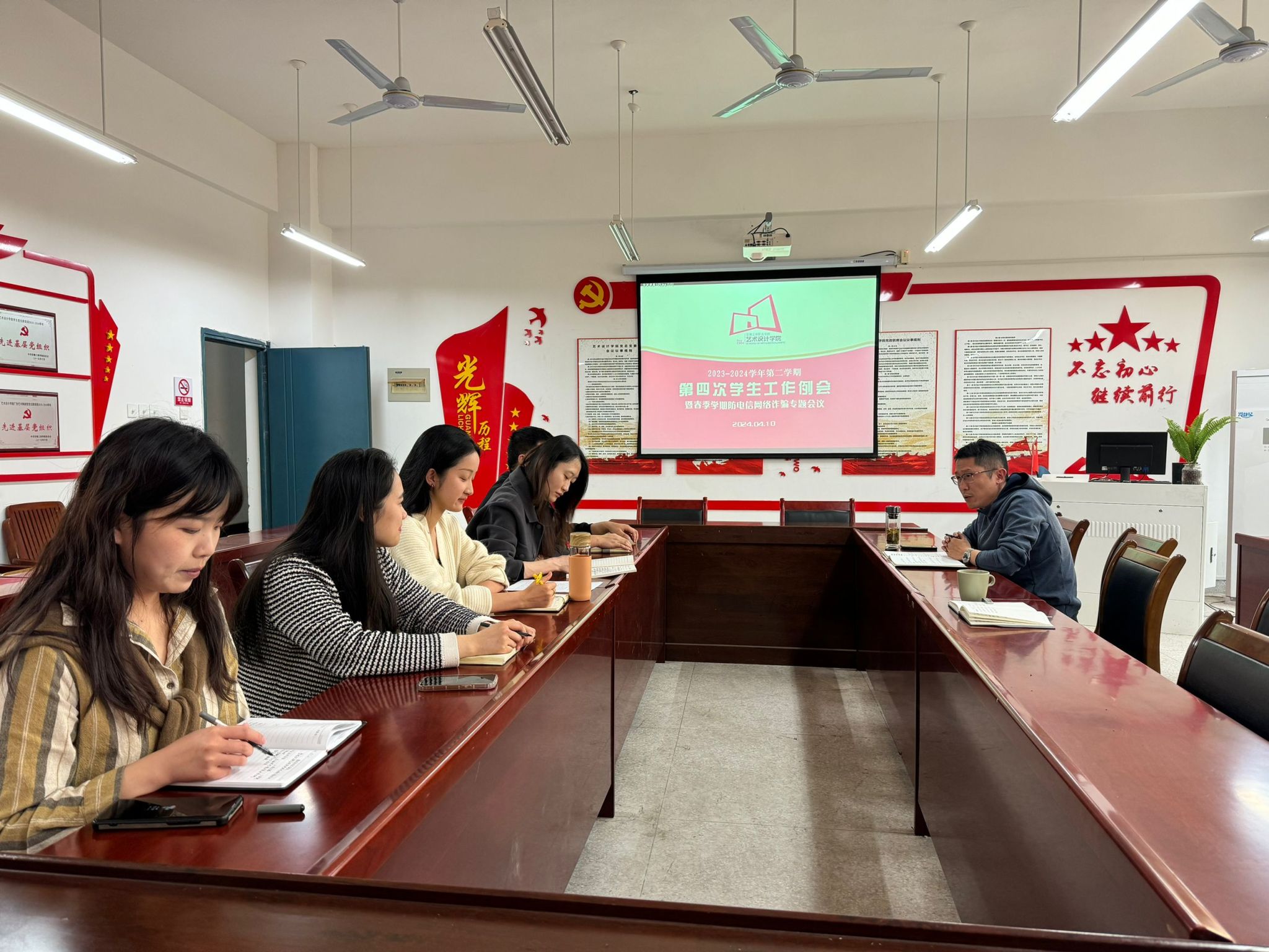 4月10日中午,我院召开本学期第四次学生工作例会暨春季学期防范电信网络诈骗工作推进会,全体专兼职辅导员参加会议。会议由学院党总支副书记张乐主持。
