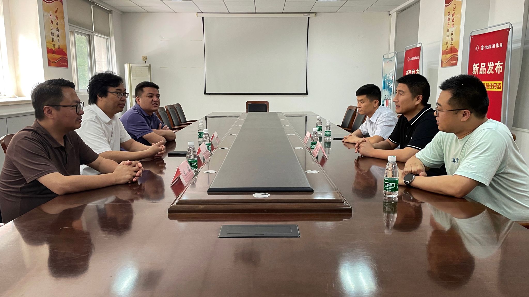 随后,在集团公司总部办公室大楼会议室与姜克等举行了座谈会。座谈会上,姜克代表皖酒集团对孔成一行表示热烈欢迎,并全面介绍了公司的发展历程、战略布局、特色产品、业务扩张和发展目标,阐述了对于员工的培养模式及发展规划等。孔成结合当前就业形势,介绍了我院的相关专业,毕业生的就业去向情况,强调开展访企拓岗行动是学校强化校企衔接、深化校企合作的重要途径,也是学校提升人才培养质量,促进毕业生就业的需求。他表示学院将充分发挥人才资源优势,与皖酒集团进行深度对接。同时希望双方以后可以加深合作,在人才培养、专业建设、师资锻炼、毕业生实习就业等方面要更加紧密合作,持续的服务好企业,服务好学生。