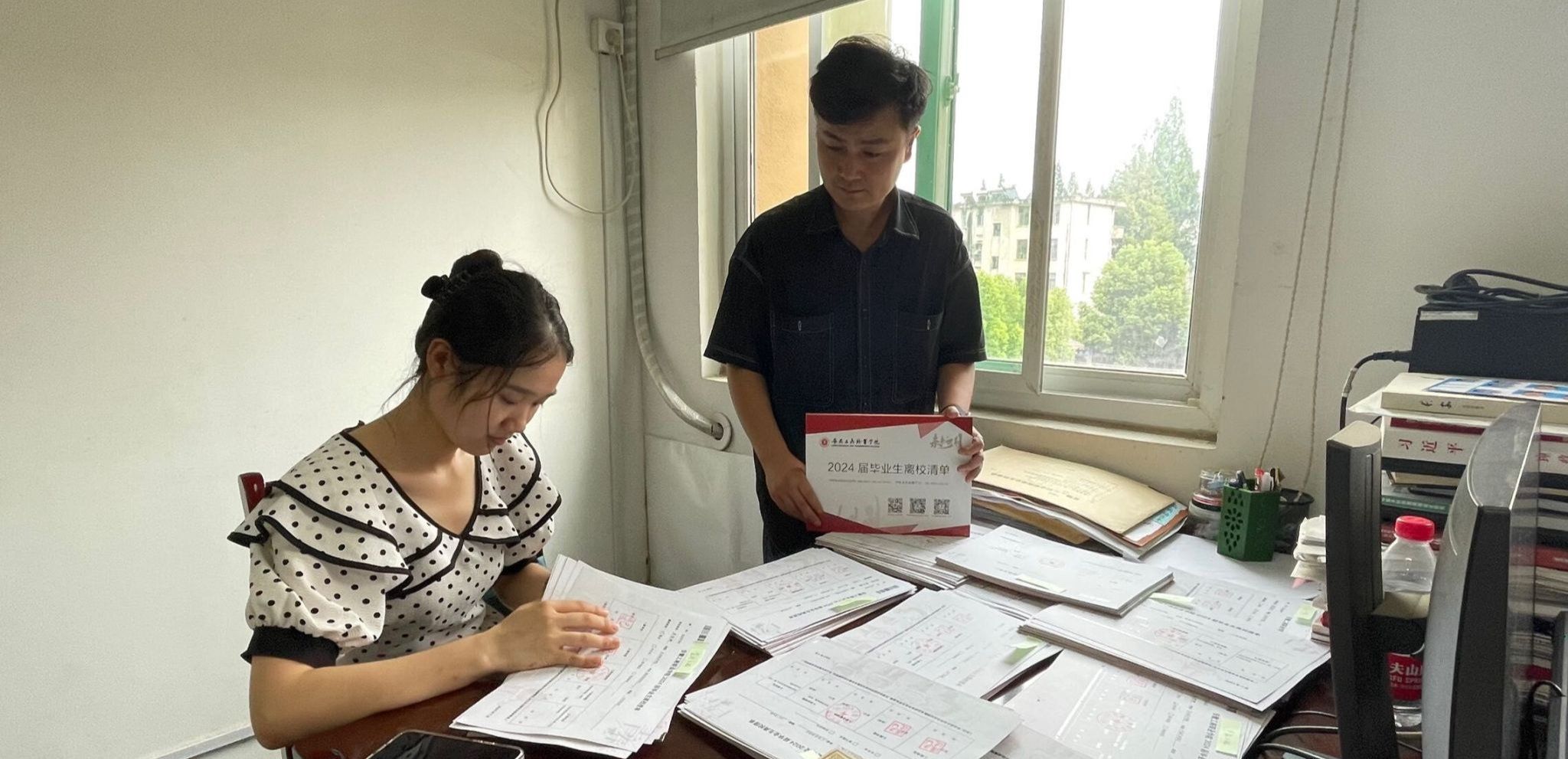 值班值守,确保毕业生安全离校。7月22日至24日,各岗位老师坚持在岗,做好学生离校前服务工作。7月22日下午,全体在岗教师首先检查了14个毕业班教室,排除安全隐患,检查设备交接情况。7月23日,两位辅导员帮助2024届毕业生整理离校清单,确保学生离校前的工作成功交接。7月22日至7月24日先后3次下宿舍,查看学生离校准备情况,询问了同学们的毕业去向及未来打算,叮嘱同学们调整好心态,积极适应社会,强调了文明离校注意事项,鼓励毕业生们要坚定理想、追求真理、感恩母校,并为每位毕业生送上最诚挚的祝福。截止7月24日,艺术设计学院2024届毕业生顺利全体离校。