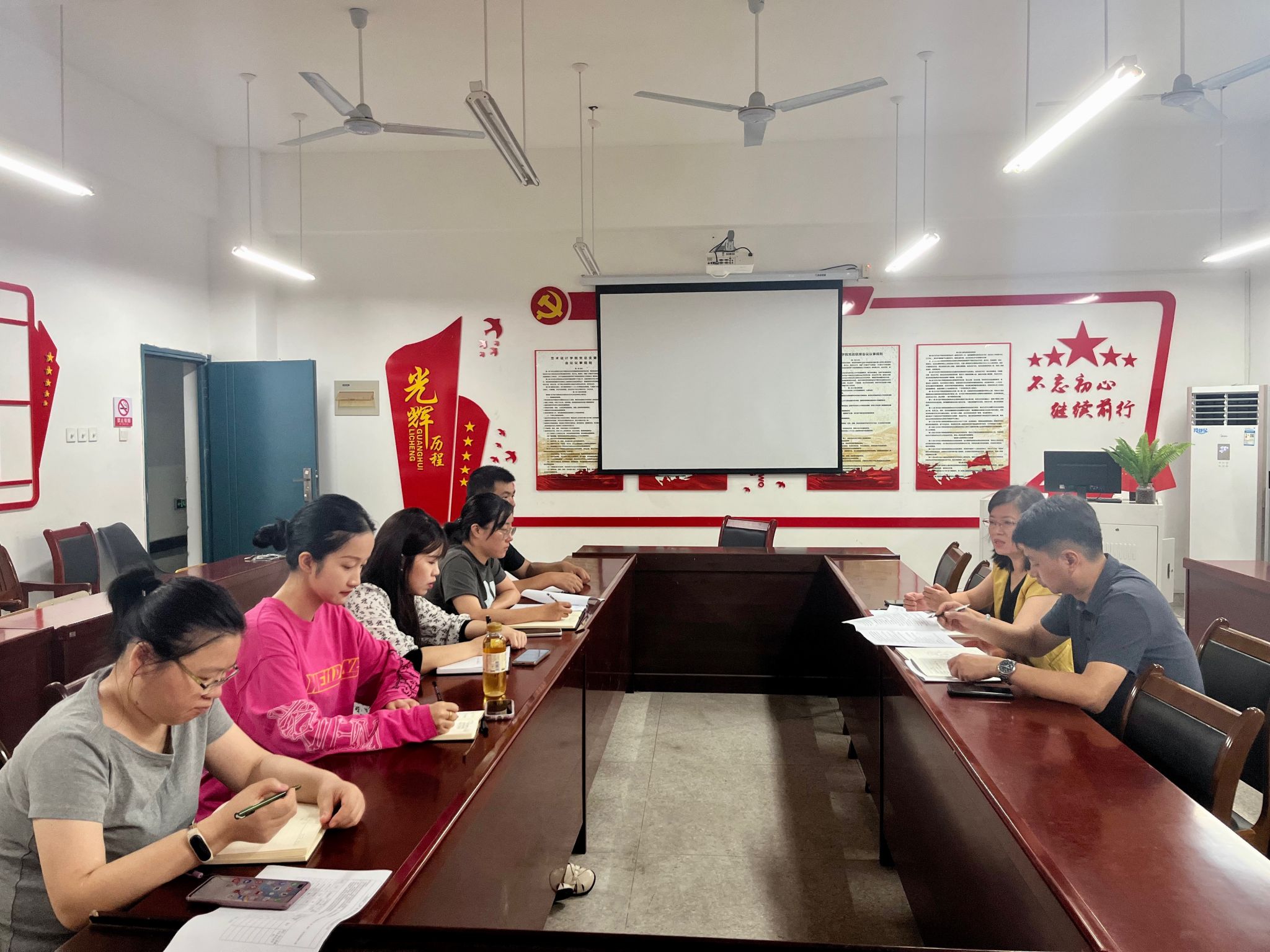 9月12日上午,艺术设计学院在庐阳校区致知楼三楼党员活动室召开新学期教学工作例会,艺术设计学院院长魏芬、环艺教研室主任瞿晨及教务科工作人员参加会议。会议由魏芬主持。
