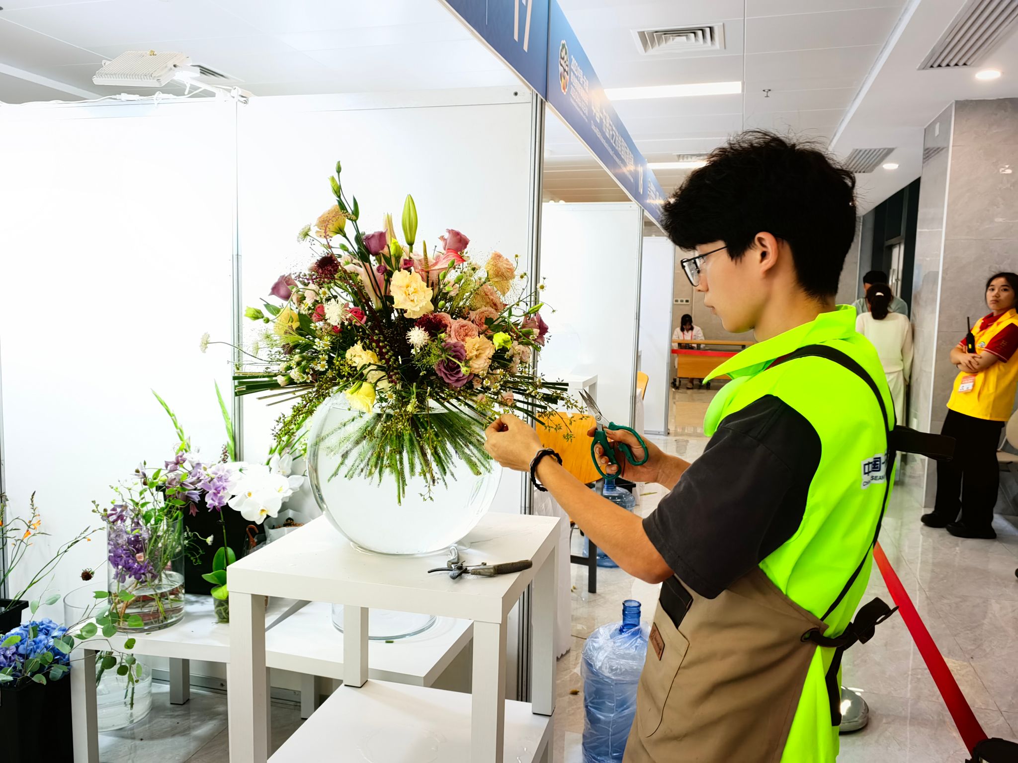 9月15日,由全国住房和城乡建设职业教育教学指导委员会指导,广西壮族自治区教育厅主办,广西建设职业技术学院承办的2023中国—东盟花艺技能国际邀请赛落下帷幕。我校艺术设计学院21级产品艺术设计专业张成飞获得银奖和最佳创意奖,22级产品艺术设计专业魏紫姸获得铜奖。这次国际邀请赛共有13个院校19位选手参赛,分别来自中国、日本、马来西亚等国家代表队参赛。安徽省仅有我校应中国住房和城乡建设部教指委邀请参赛。校党委委员、党委宣传统战部部长、艺术设计学院党总支书记孔成带队参赛并担任裁判。