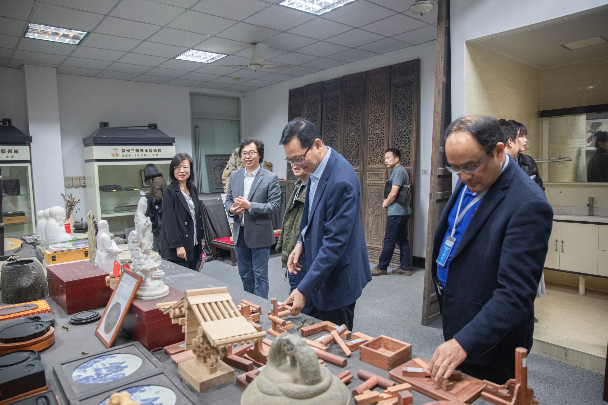 随后专家组一行分别到徽州三雕大师工作室、徽派创新设计工作室、摄影摄像工作室、3D打印工作室、雕塑陶艺工作室、徽州三雕查嵘艺术馆等实地考察验收,并在徽派插花工作室观摩插花劳动教育实践授课现场,专家与学生进行互动并深入体验了劳动教育实践课程。专家组一行对我校基地劳动教育立足于两个国家级资源支撑以及实践场所的规划布局、活动开展、特色育人等方面给予了充分肯定。同时希望,我校徽派技艺劳动教育实践基地在今后的劳动实践教育活动中要充分发挥区域辐射作用,努力营造全社会关心和支持新时代大中小学劳动教育的良好氛围。