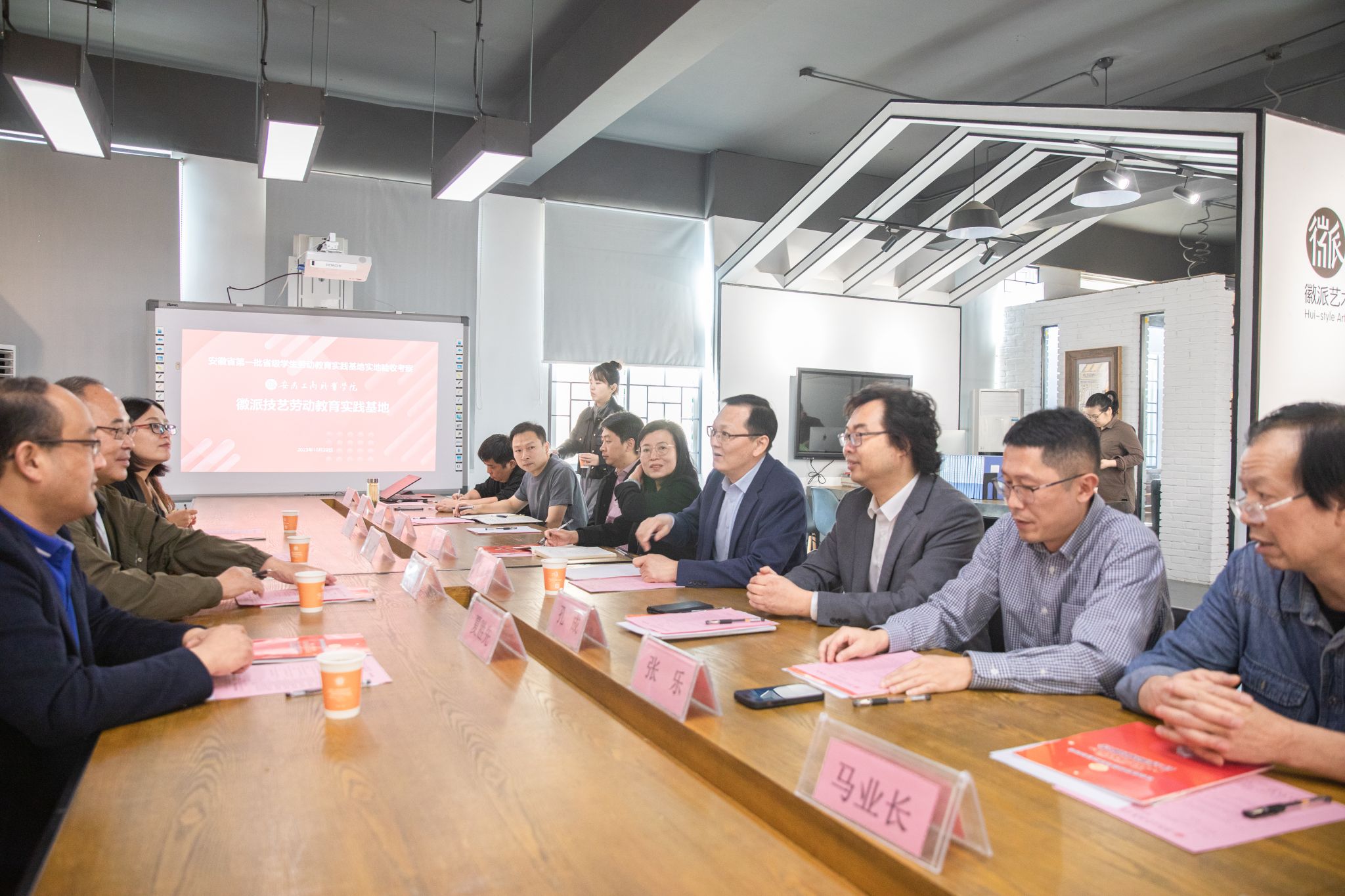 10月22日上午,安徽省教育厅省级劳动教育基地验收专家组在安徽师范大学教授、安徽省劳动教育研究中心副主任周兴国为组长一行四人来到我校庐阳校区进行安徽省第一批省级学生劳动教育实践基地立项建设单位验收。党委委员、副院长、徽派技艺劳动教育实践基地副组长陈章奇;党委委员、党委宣传统战部部长、艺术设计学院党总支书记、基地项目负责人孔成;艺术设计学院院长、基地负责人魏芬、艺术设计学院党总支副书记张乐及基地相关课程负责人陪同验收。我校徽派技艺劳动教育实践基地于2022年7月获安徽省教育厅批准立项建设单位,基地设在庐阳校区,办公室设立在艺术设计学院。