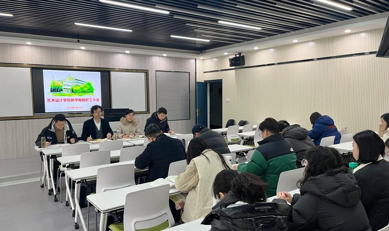 2月28日下午,艺术设计学院在庐阳校区致知楼二楼Z204召开新学期教职工大会。校党委委员、党委宣传统战部部长、艺术设计学院党总支书记孔成,艺术设计学院党总支副书记、院长魏芬,党总支副书记张乐,教务科负责人瞿晨及学院全体教职工参加会议。会议由张乐主持。