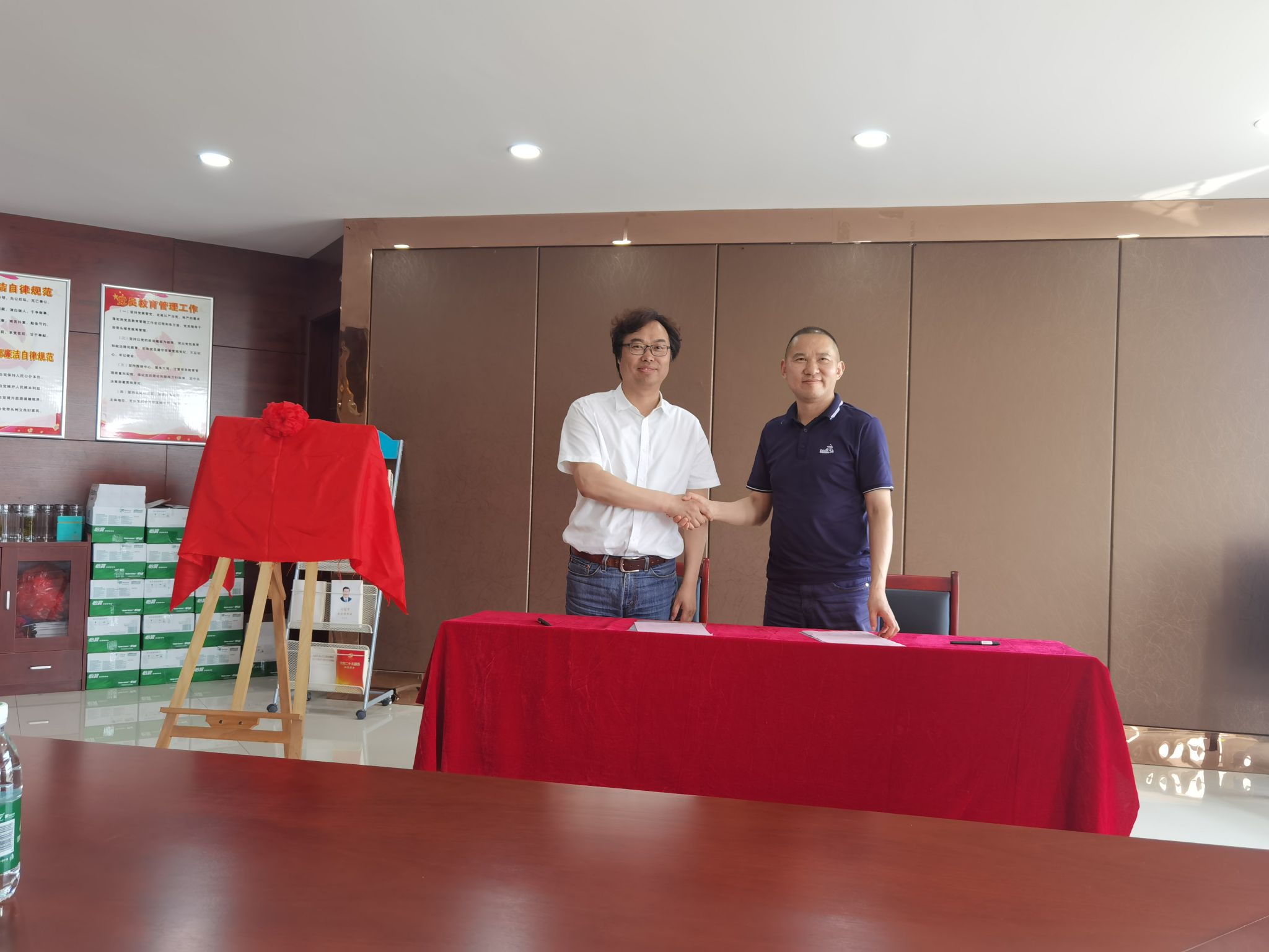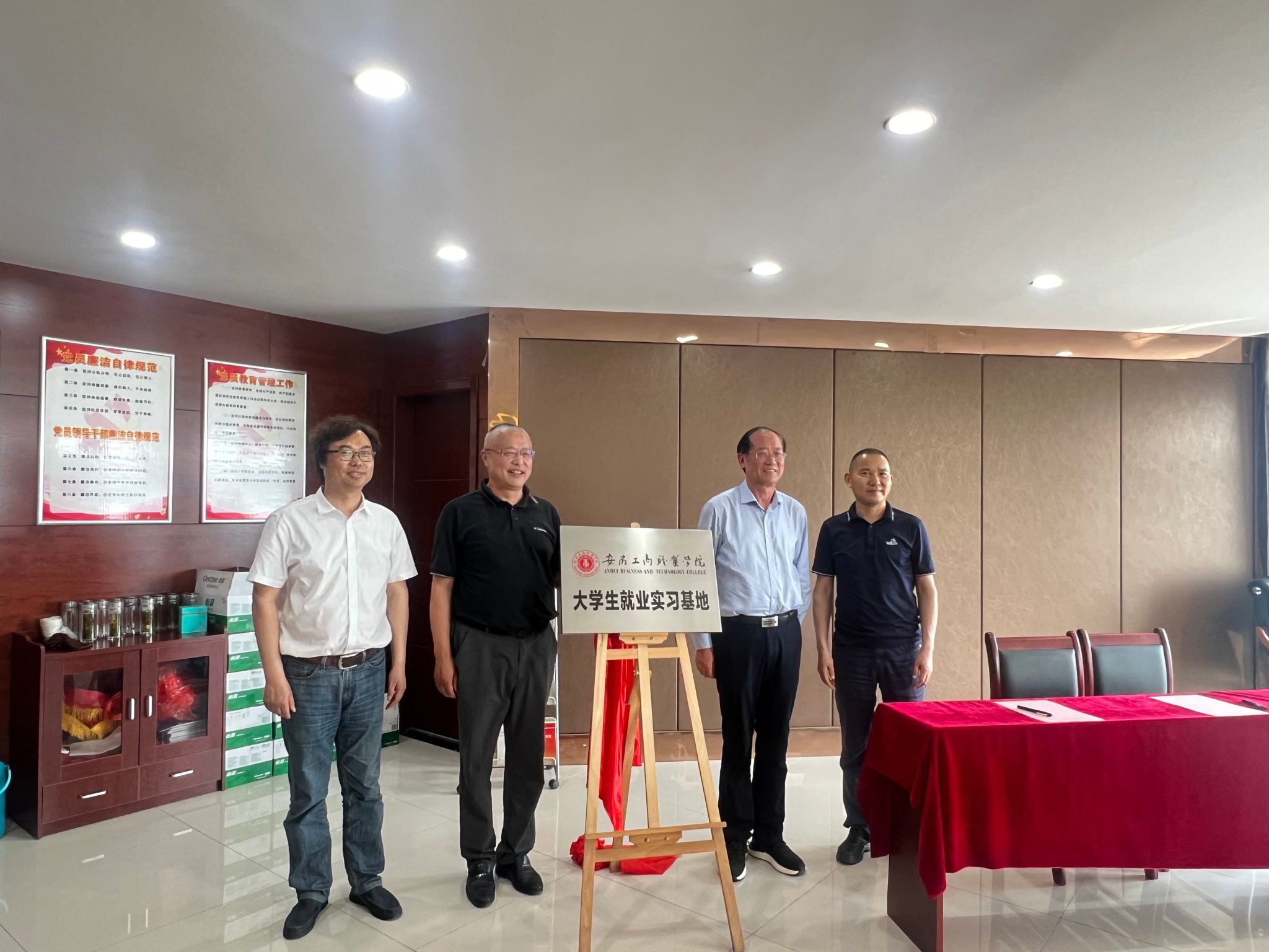 随后,孔成与安徽联胜广告产业园运营公司副总经理李文共同签署了合作协议,并与刘先艾、黄尔维共同为安徽工商职业学院大学生实习实训基地揭牌。