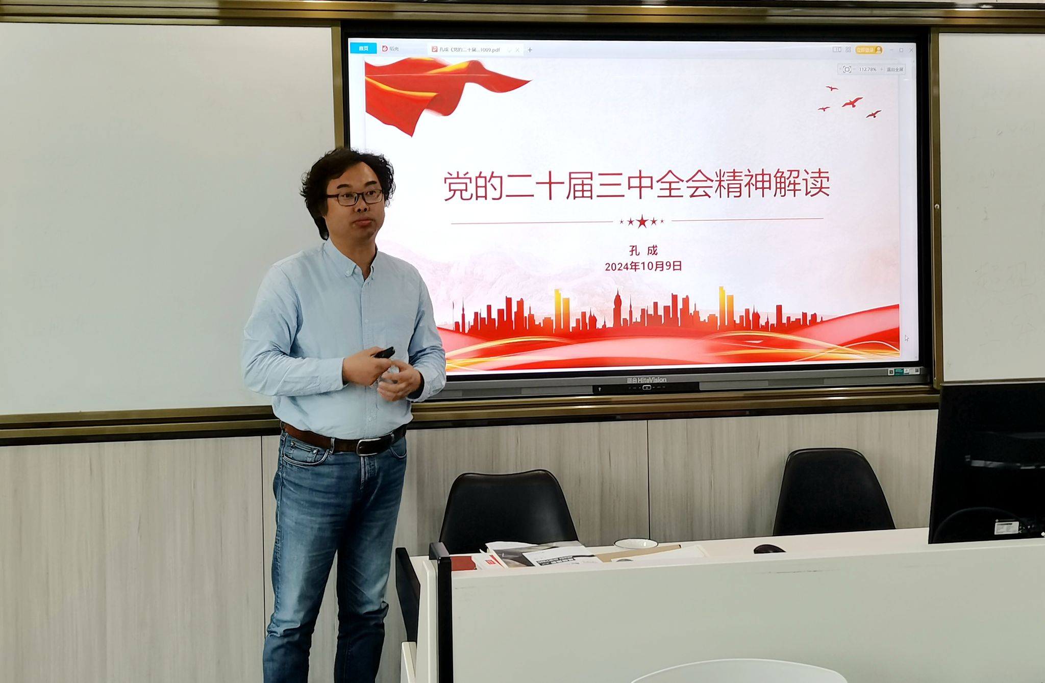 为深入学习贯彻党的二十届三中全会精神,10月9日下午,校党委委员、党委宣传统战部部长、艺术设计学院党总支书记孔成在庐阳校区致知楼204智慧教室,为艺术设计学院全体教职工讲授了题为《党的二十届三中全会精神解读》的主题党课。