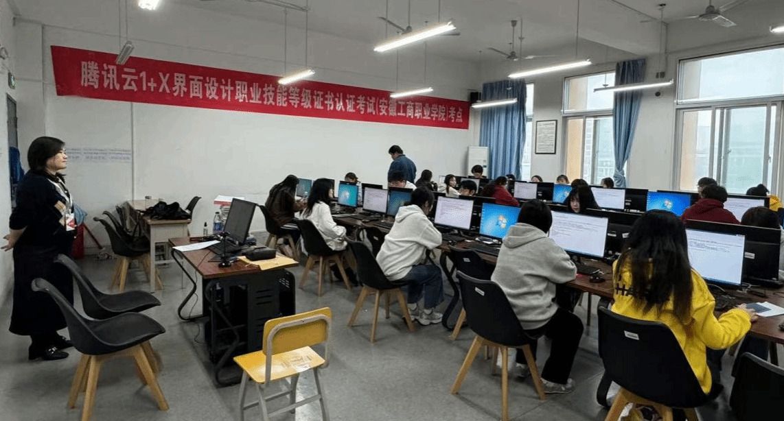 2024年10月26日下午在艺术设计学院圆满完成了“1+X”界面设计职业技能等级认证(中级)考试。我校作为安徽省第三批界面设计牵头院校、试点院校已经是第5次参加,由22级广告艺术设计专业50名学生进行了腾讯云计算(北京)有限责任公司组织全国统一认证考核,本次考试分为理论知识和实操技能两个部分,内容涵盖设计基础应用、平面设计、界面设计、设计交互、动效设计、网页设计等多个方面,全面考查学生在产品APP界面设计等方面的专业技能。