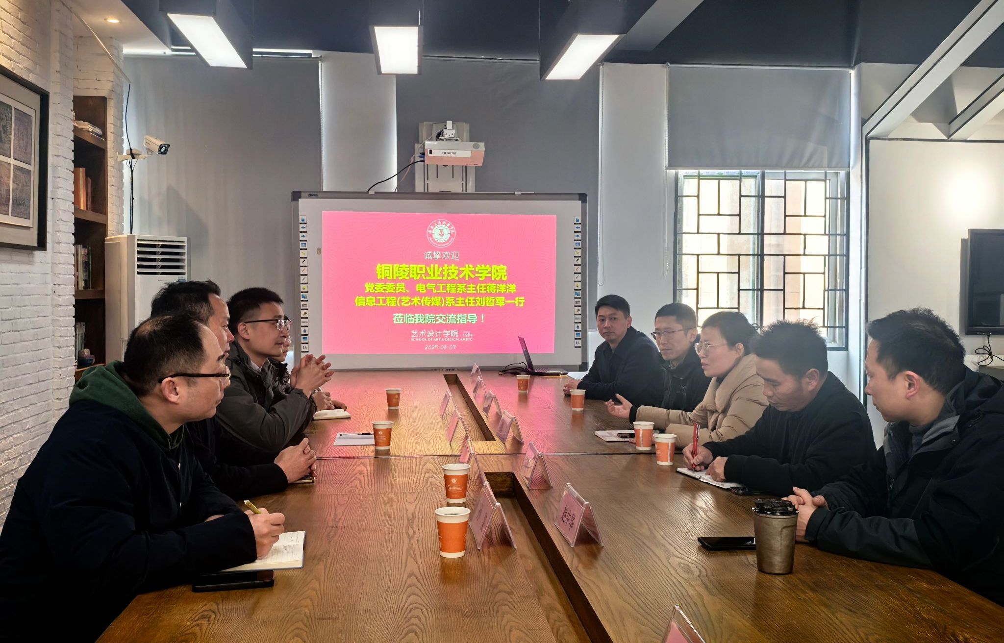 3月8日下午,铜陵职业技术学院党委委员、电气工程系主任蒋洋洋,信息工程(艺术传媒)系主任刘哲军一行莅临我院交流指导。艺术设计学院党总支副书记、院长魏芬、副书记张乐、副院长邱志斌及各专业教研室主任热情接待并参加座谈。