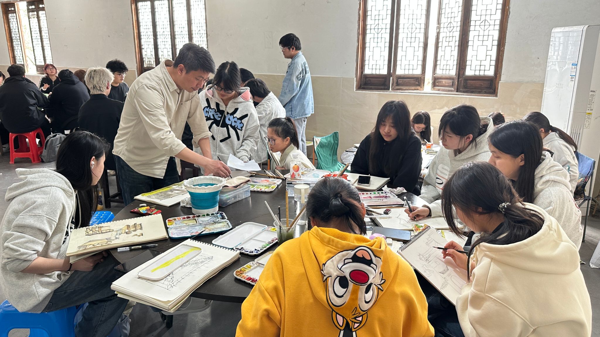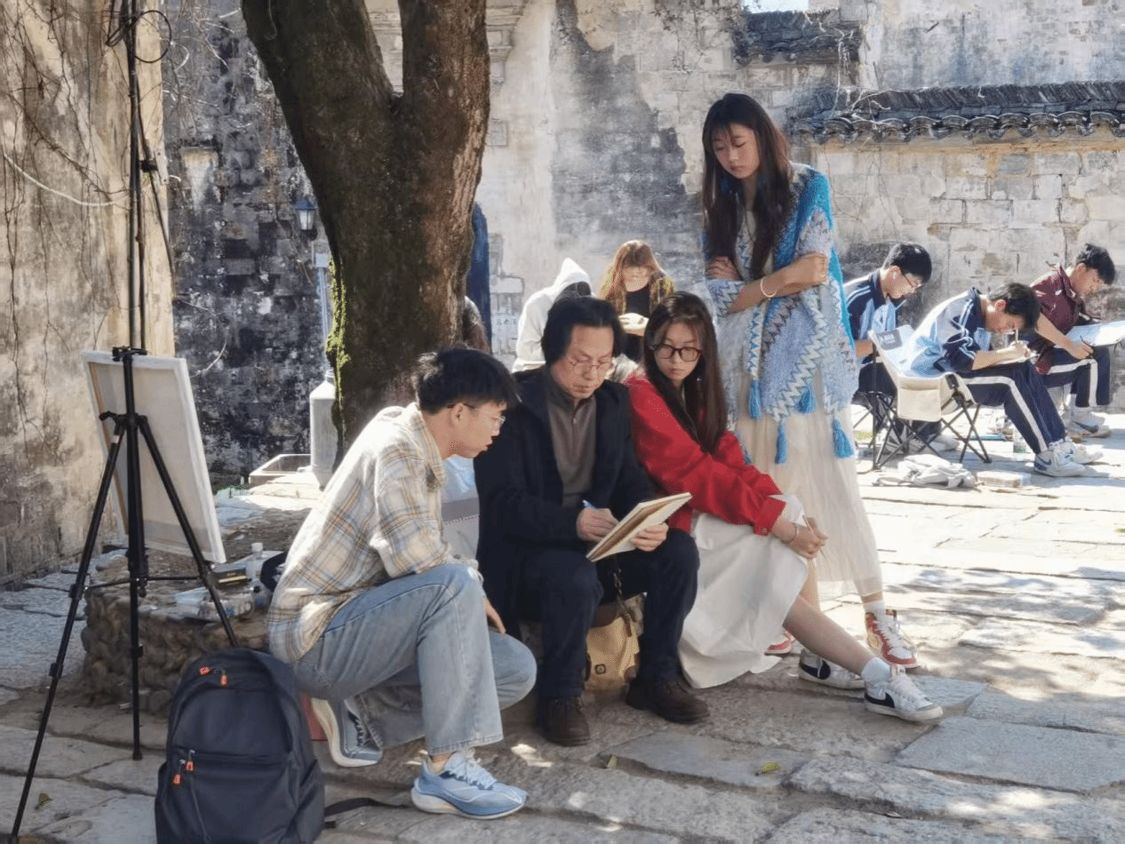 为深化艺术专业教学改革,提升学生实践创作能力。艺术设计学院2024级产品艺术设计、环境艺术设计、广告艺术设计专业共计190余名学生在5位指导教师的带领下,于3月17日、3月24日分两批先后赶赴安徽宏村及安徽屏山开展了为期7天的写生采风实践教学活动。