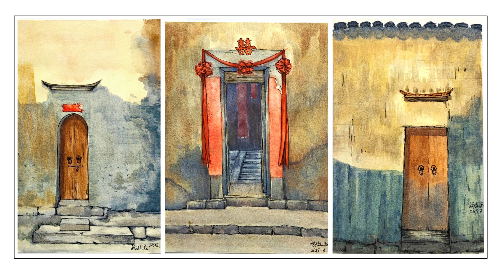 3月24日,在左建华、瞿晨、邱志斌三位授课教师的带领下,2024级广告艺术设计、环境艺术设计专业学生赴黟县屏山村。在为期一周的实践中,环境艺术设计专业学生重点运用速写、水彩等形式,细致观察并描绘徽派建筑的精巧结构、空间透视关系;广告艺术设计专业学生则从人文风情、视觉元素中汲取创意灵感。授课老师们全程悉心指导,每日对学生的写生习作进行点评。