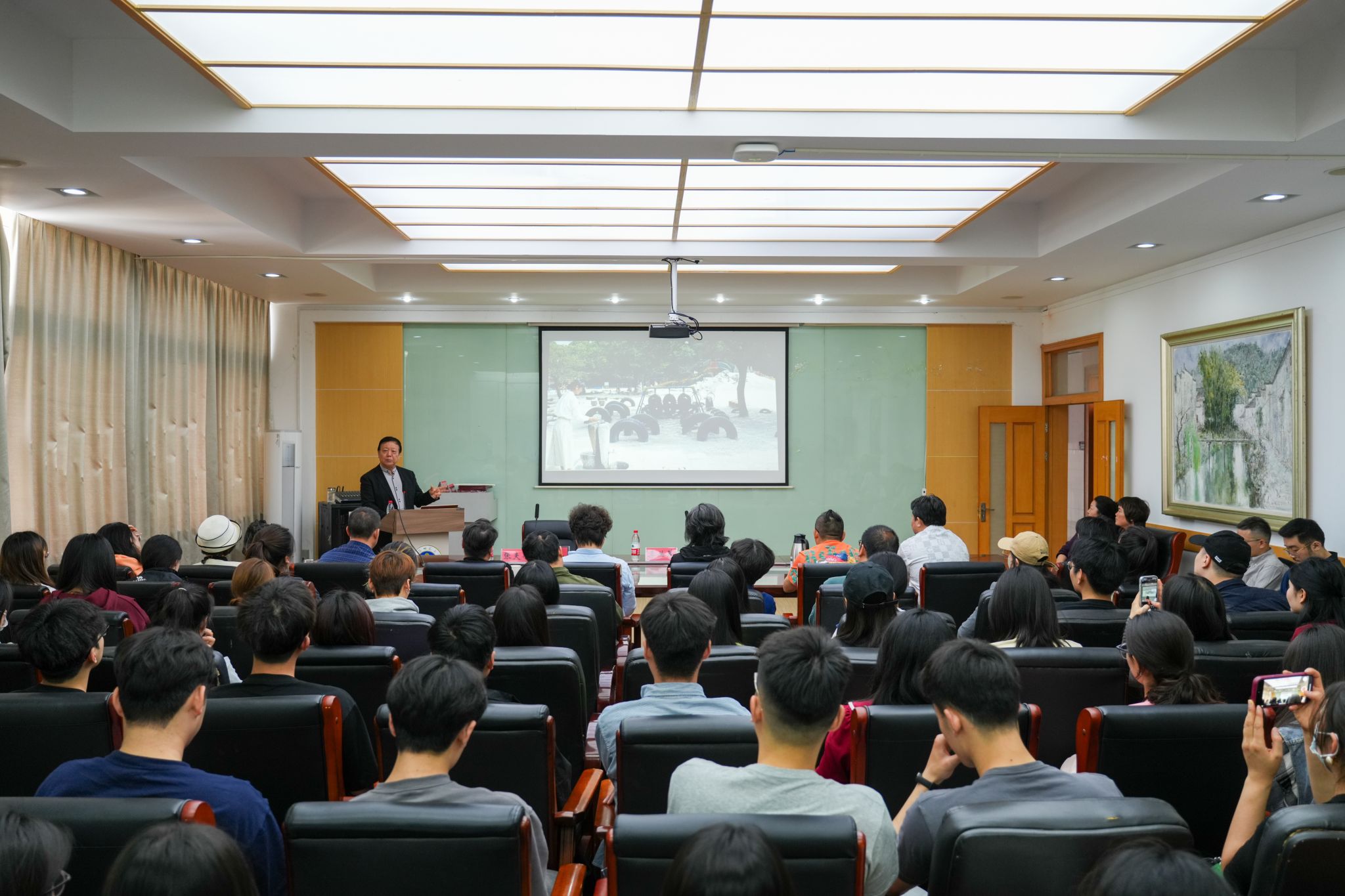 值得一提的是,会议前,全体与会人员还参加了由安徽师范大学美术学院与安徽省美术家协会设计艺委会联合举办的学术报告会。会上,特邀清华大学教授、博导张夫也作了题为《走向何方——新时期设计的发展趋势》的学术报告,为与会人员带来了前沿的设计理念和思考。