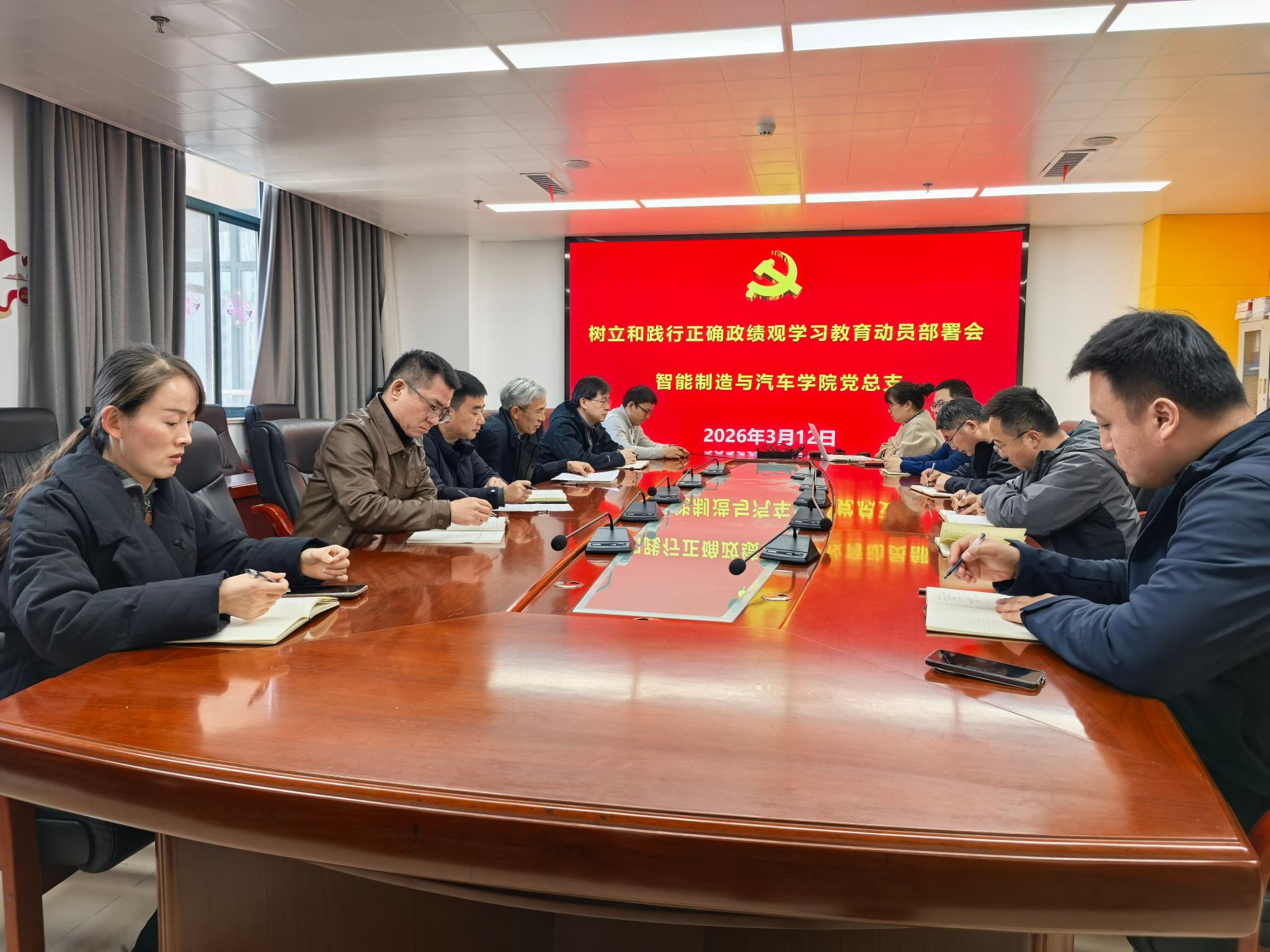 3月12日,智能制造与汽车学院党总支在第六会议室召开树立和践行正确政绩观学习教育动员部署会。学院党总支书记丁浩主持会议,党总支副书记、院长姚庆锋,党总支委员、各支部书记及部分教师党员代表参加会议。