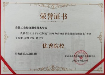 2022年,安徽工业经济职业技术学院计算机基础专业试点启动WPS办公应用1+X“课证融通”教学改革,并于2022年5月、6月、12月分批次举办金山WPS办公应用职业技能初级证书考试,考试通过率为90.3%。
